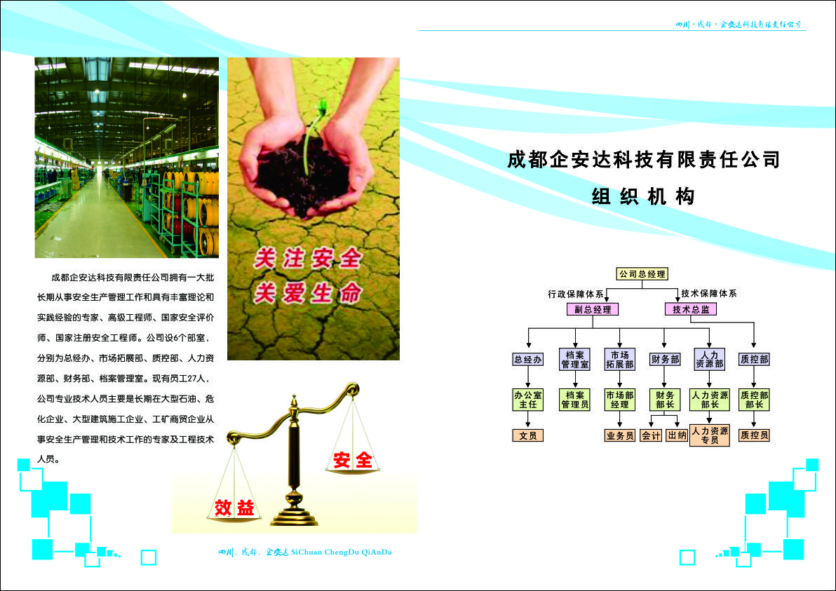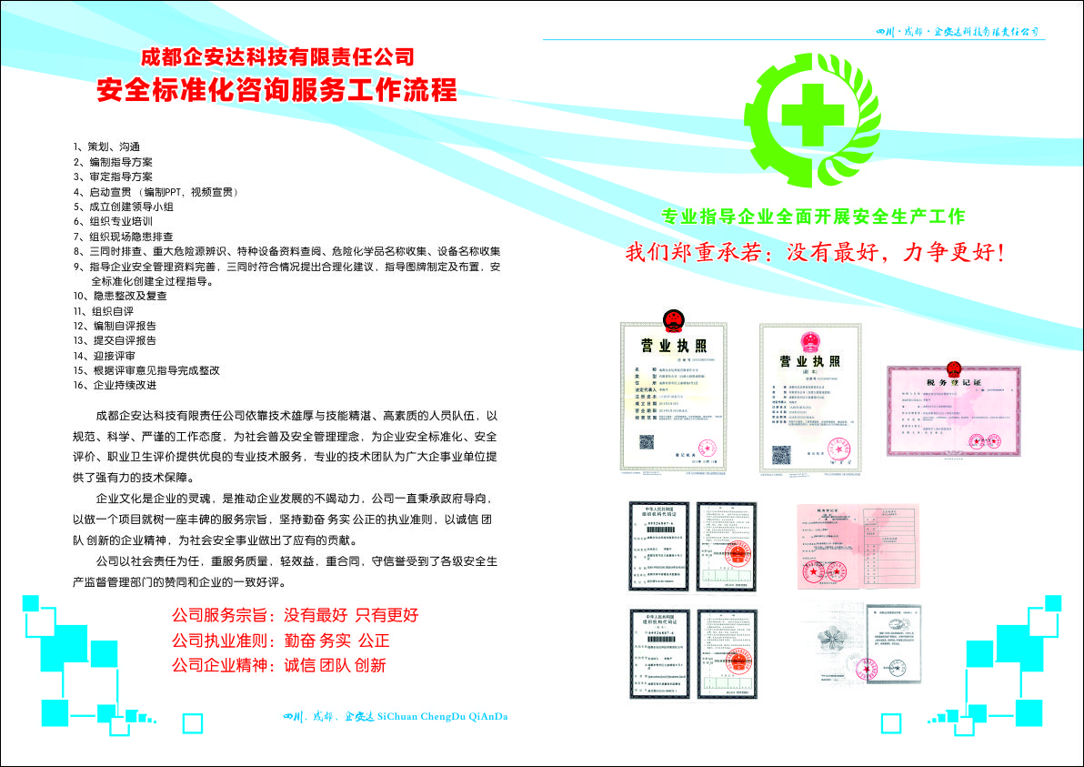 公司拥有冶金、石化、轻工、医药化工、机械、电子、非煤矿山、危险化学品、建设工程、商场(超市)、星级以上饭(酒)店等各行业安全管理专业咨询精英团队。我们凭着专业技术、优质服务的理念,为企业开展各类安全咨询服务工作。开展安全隐患排查,建立规范的管理制度,提出科学合理的整改措施,为企业规范管理提供服务、为政府决策提供依据。